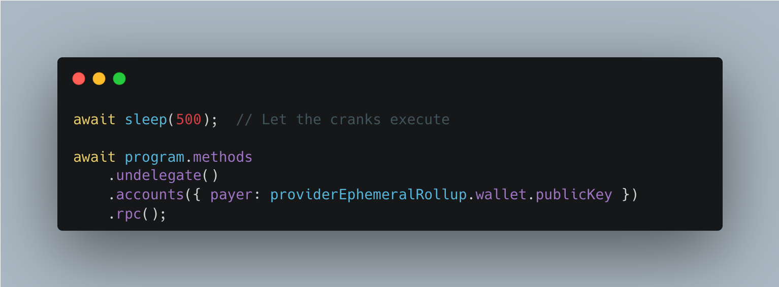 Note that your accounts need to be delegated, as these cranks are only native to our Ephemeral Rollups. Read more about delegation here.